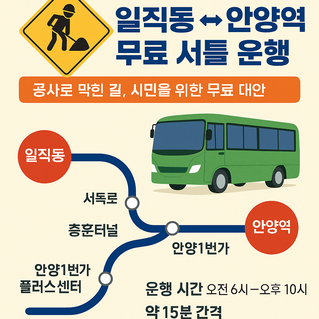 광명시는 시민들의 불편을 최소화하기 위해 5월 14일부터 일직동과 안양역을 잇는 무료 셔틀버스를 운영하고 있습니다.