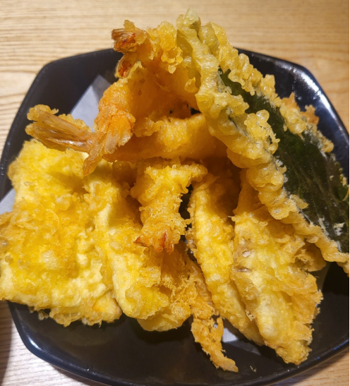 바삭하게 튀겨진 튀김도 함께 나왔어요. 특히 고구마튀김은 달달하고, 새우튀김은 속이 탱글해서 맛있었어요.