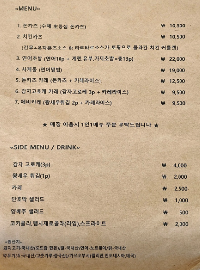 - 단호박/양배추 샐러드, 고로케 등 사이드 메뉴도 다양