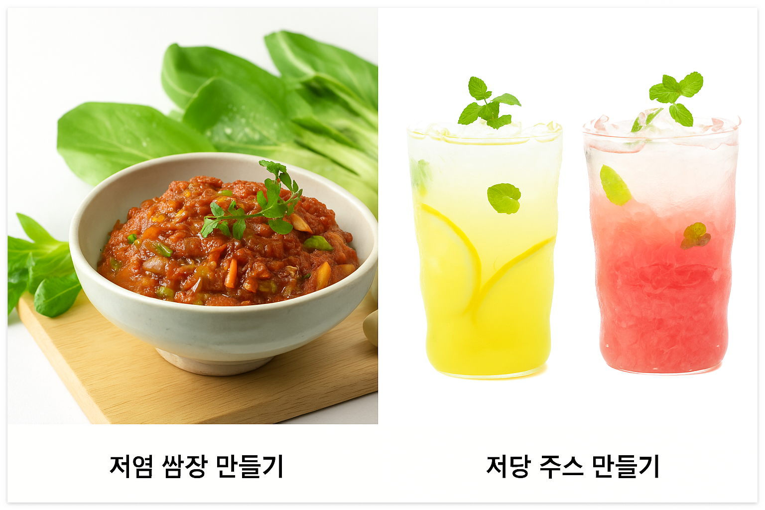 - 7월 프로그램: 짠맛 미각 테스트 → 저염 이론 강의 → 저염 쌈장 만들기