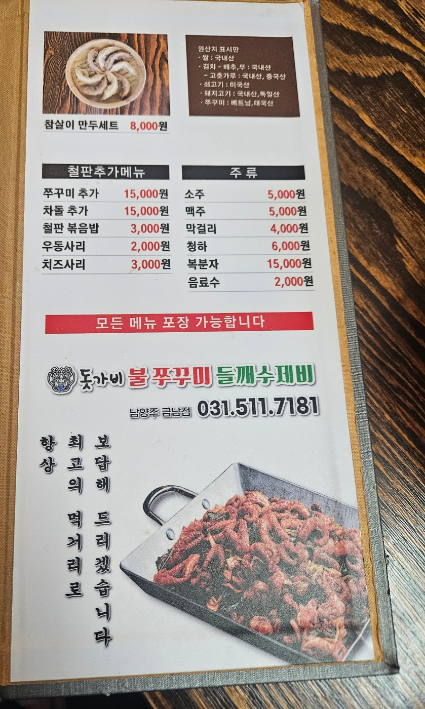 - 주소: 경기 남양주시 화도읍 북한강로 1402 한옥집 돗가비 불쭈꾸미 금남점