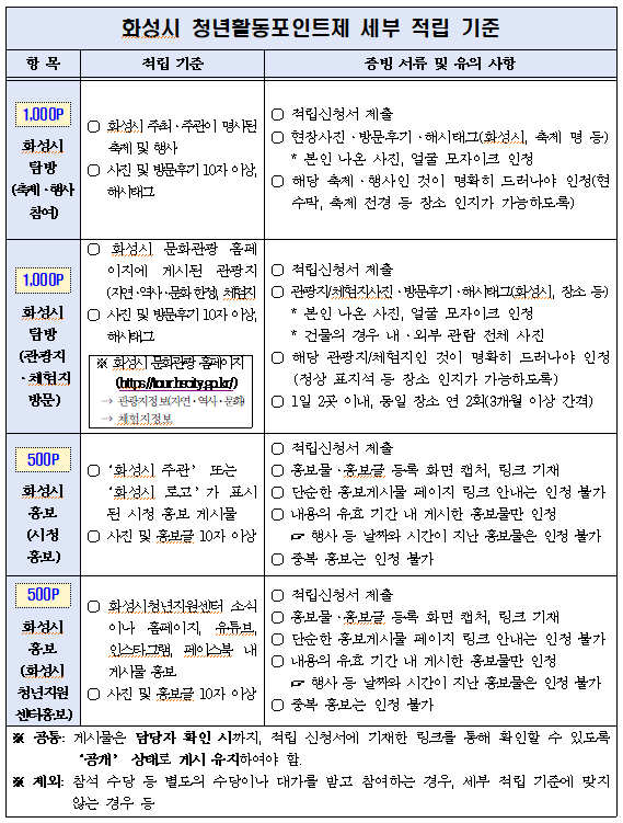 - 참여조건: 화성시 청년활동 참여 후 인증