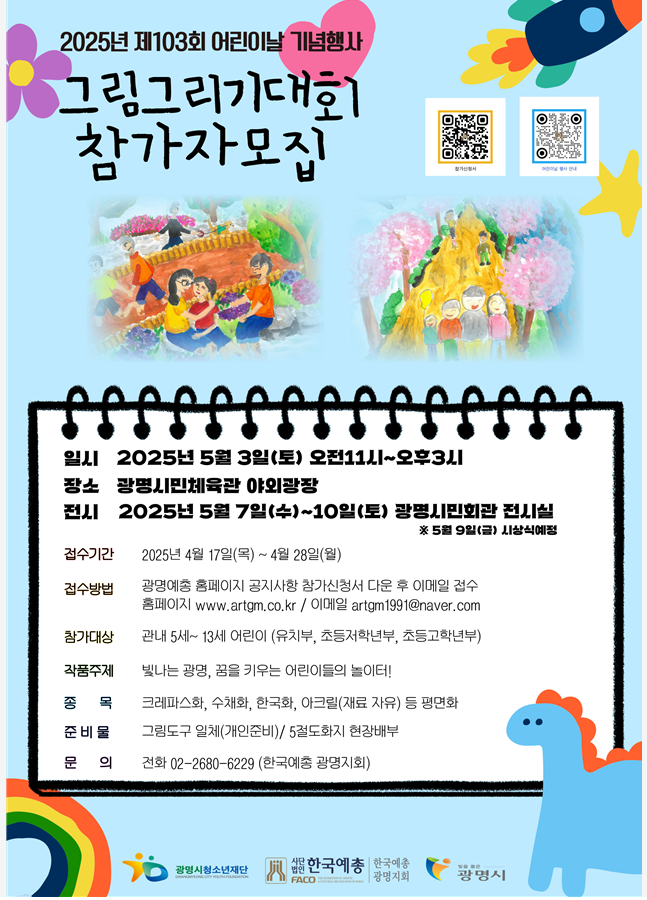같은 날, 광명시민체육관 야외광장에서는 어린이 그림그리기대회도 함께 열려요.